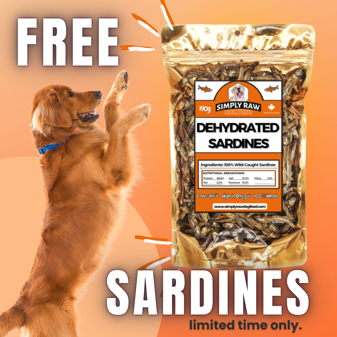 With every order of Simply Raw Dog Feed, we're including a bag of our popular Dehydrated Sardines!